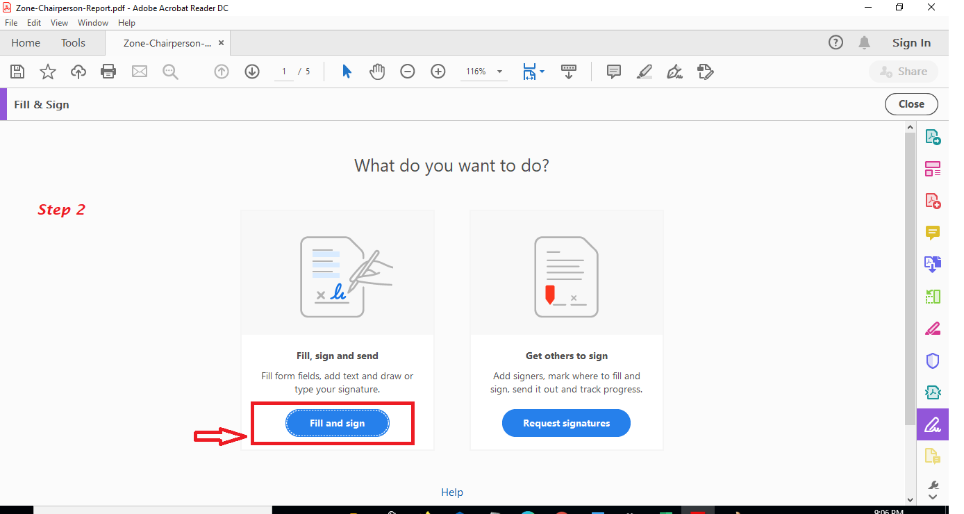 b. Once opened, click on fill & sign.