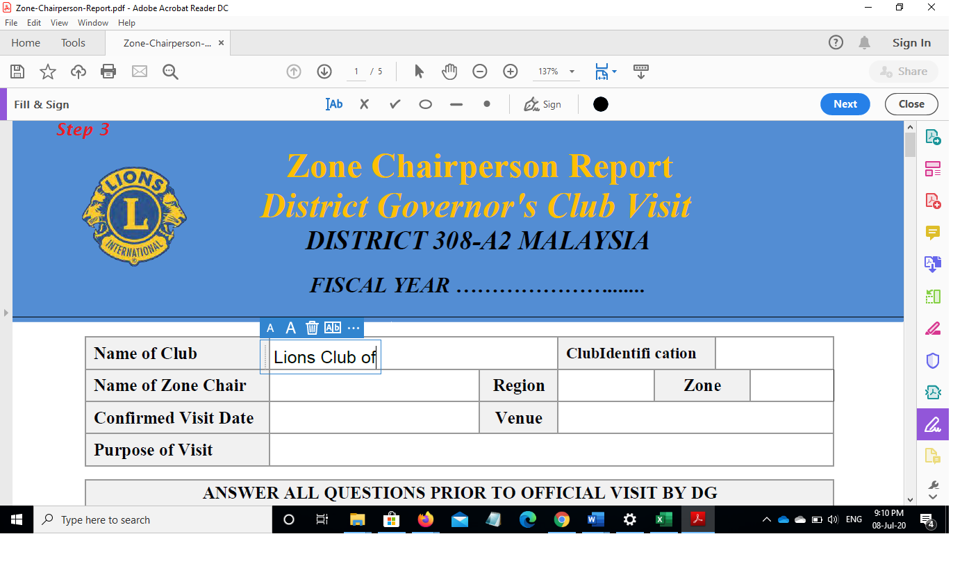 How to fill the form using acrobat reader (Version 2020):-